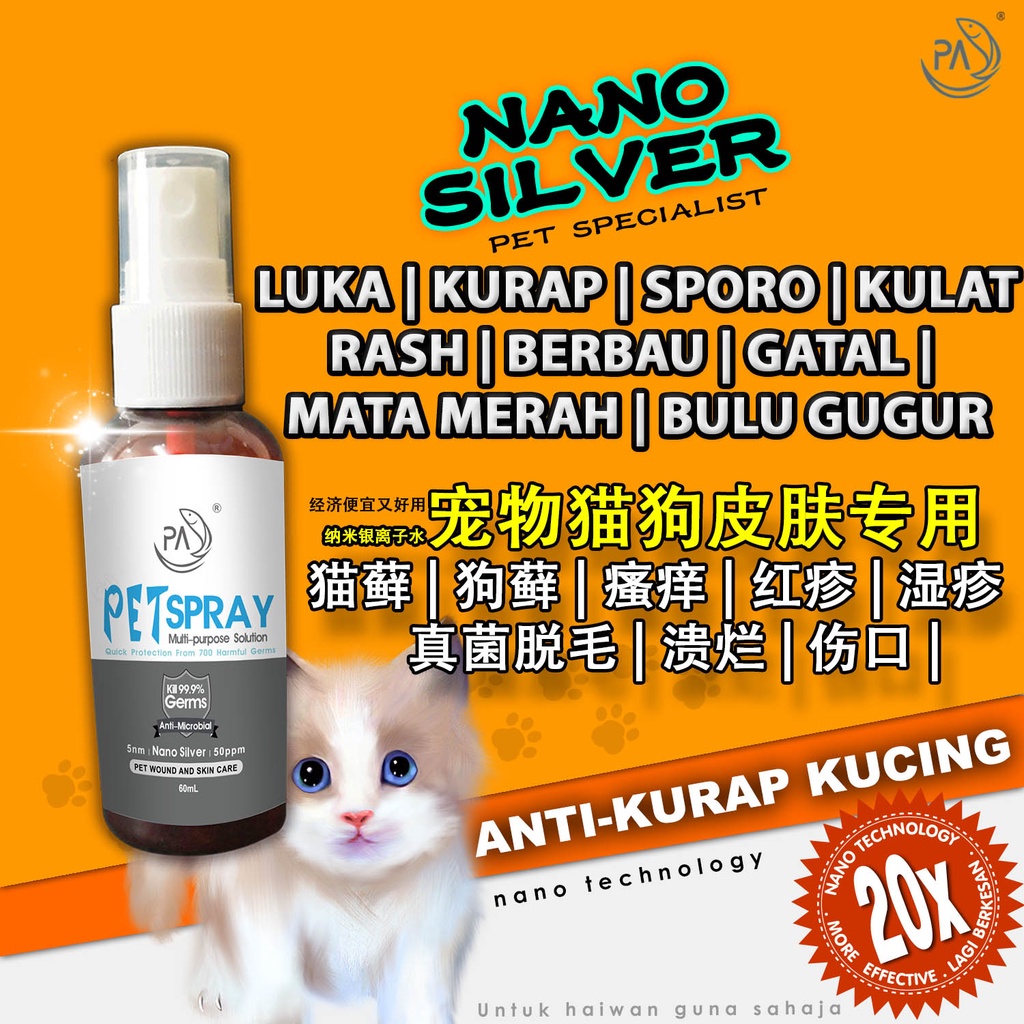 Pa Petspray Nano Silver Nano Pet Spray Fungus Ubat Kurap Kucing Nano Perak Dog Cat Arnab Luka Sporo Bau 猫藓 纳米银离子 狗皮肤病药伤口 Shopee Malaysia